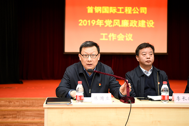 3月22日上午,首鋼國際工程公司2019年干部大會(huì)在公司十四層報(bào)告廳舉行,公司黨委書記、董事長李楊出席會(huì)議并講話,黨委副書記、總經(jīng)理侯俊達(dá)主持會(huì)議,工會(huì)主席、紀(jì)委書記陳國立做了題為《加強(qiáng)黨風(fēng)廉政建設(shè),強(qiáng)化監(jiān)督執(zhí)紀(jì)問責(zé),為公司改革發(fā)展提供堅(jiān)強(qiáng)保證》的報(bào)告,副總經(jīng)理李長興、張建,副總工李永忠、向春濤、王兆村、寇彥德、趙嘉康等出席會(huì)議,公司各黨總支書記、黨支部書記、紀(jì)檢委員及各部門領(lǐng)導(dǎo)人員、外派高管、有業(yè)務(wù)處置權(quán)崗位人員共130余人參加會(huì)議,山西公司、貴州公司領(lǐng)導(dǎo)班子成員及相關(guān)人員通過視頻參會(huì)。
