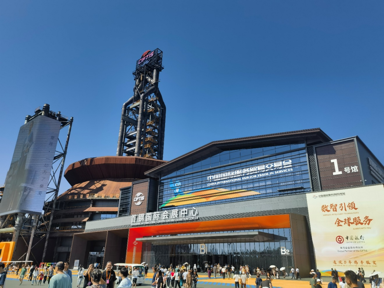 作為服貿會最重要的綜合性展覽館,本次改造保留了高爐本體及重力除塵,并擴建了兩個大型展區,總建筑面積約為36600平米,總建筑高度約為106m,是全球首個會展功能賦能于大型工業遺存的建筑。
